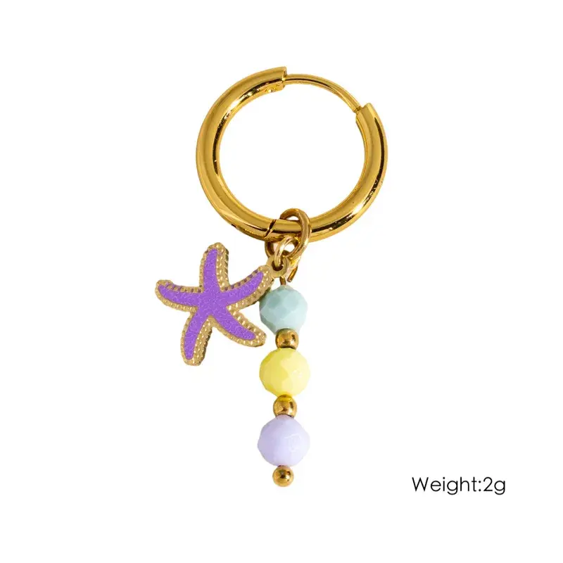 Zomerse oorbellen met zeester bedel en turquoise kralen. Gemaakt van stainless steel, kleurvast en lichtgewicht. Worden per paar verkocht.