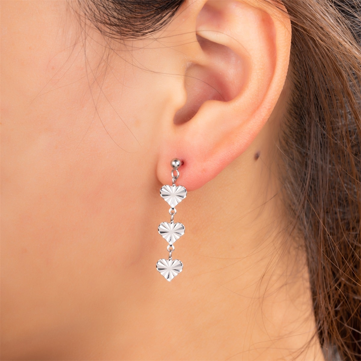 Minimalistisch & chic: Day & Eve oorhangers van stainless steel, duurzaam design, en helemaal on trend met drie hartjes voor wat extra liefde.