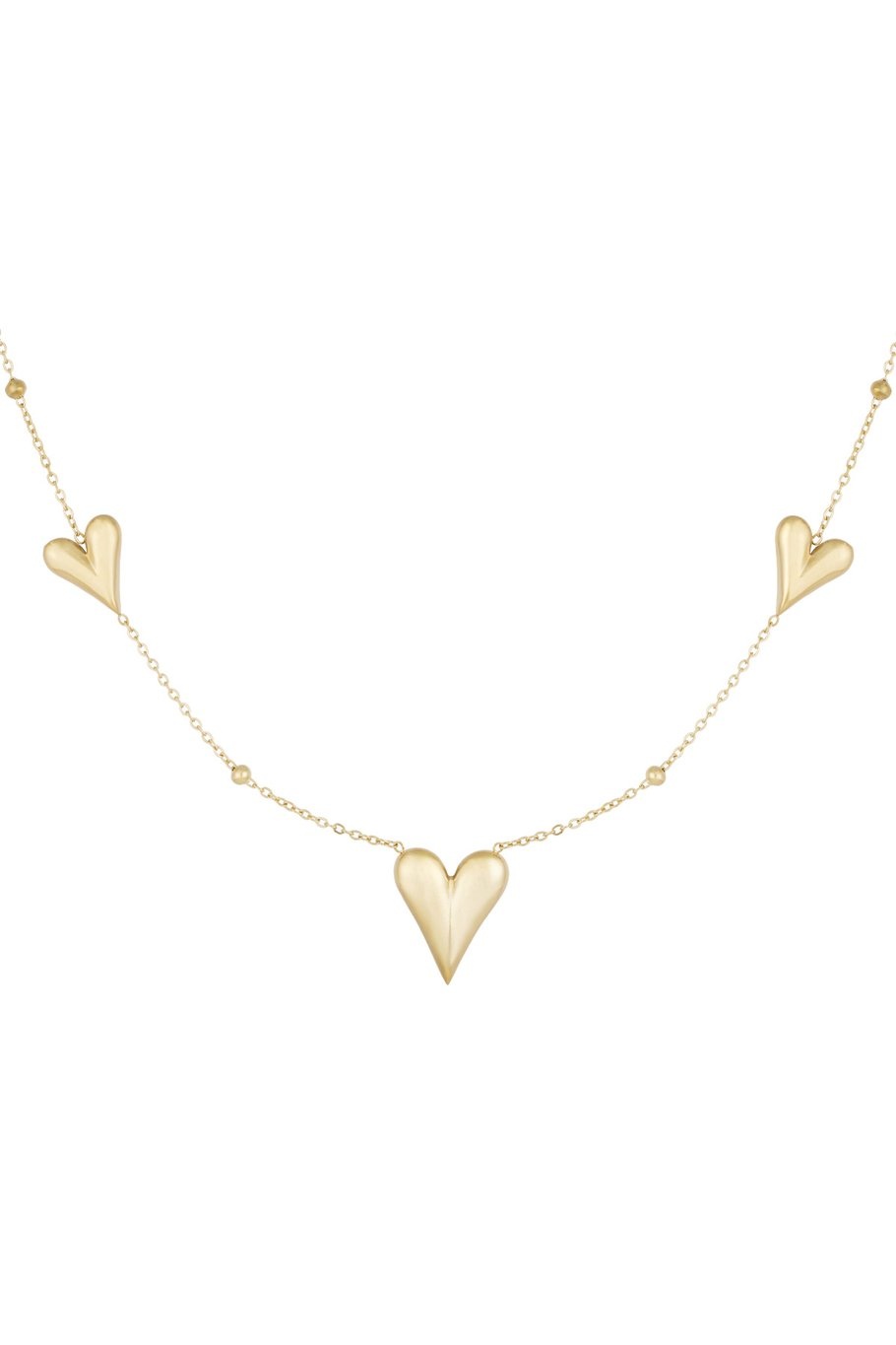 Goudkleurige stainless steel ketting met 3 statement hartjes.