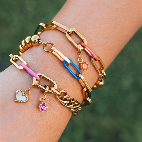 Stainless steel oranje steentje bedeltje in de platingkleuren goud, zilver of roségoud.