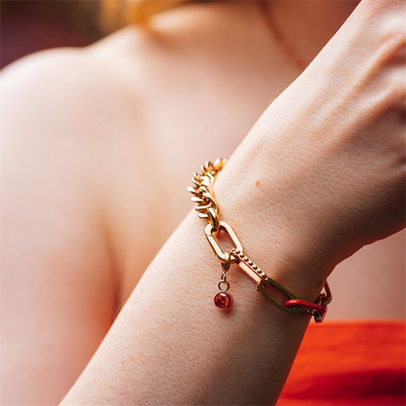 De bedel Stone Orange hanger van iXXXi Connect is gemaakt van stainless steel en is voorzien van een goudkleurige plating. De bedel bestaat uit een hanger ingelegd met een oranjekleurige zirconia en heeft een afmeting van 7mm. Hang bedel Stone Orange aan bijvoorbeeld verbindschakel Click Round en voeg een extra touch of orange toe aan jouw iXXXi Connect sieraad. De bedel Stone Orange is ook verkrijgbaar in de platingkleuren zilver en rosé goud.