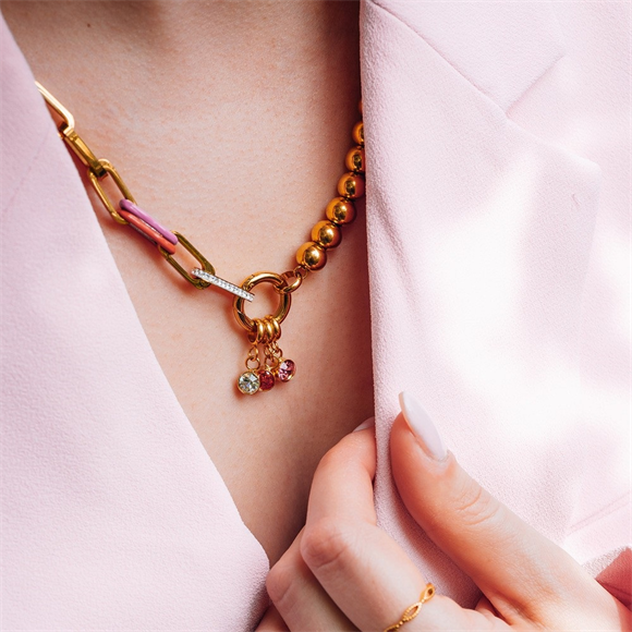 De bedel Stone Pink hanger van iXXXi Connect is gemaakt van stainless steel en is voorzien van een goudkleurige plating. De bedel bestaat uit een hanger ingelegd met een rozekleurige zirconia en heeft een afmeting van 7mm. Hang bedel Stone Pink aan bijvoorbeeld verbindschakel Click Round en voeg een extra touch of pink toe aan jouw iXXXi Connect sieraad. De bedel Stone Pink is ook verkrijgbaar in de platingkleuren zilver en rosé goud.