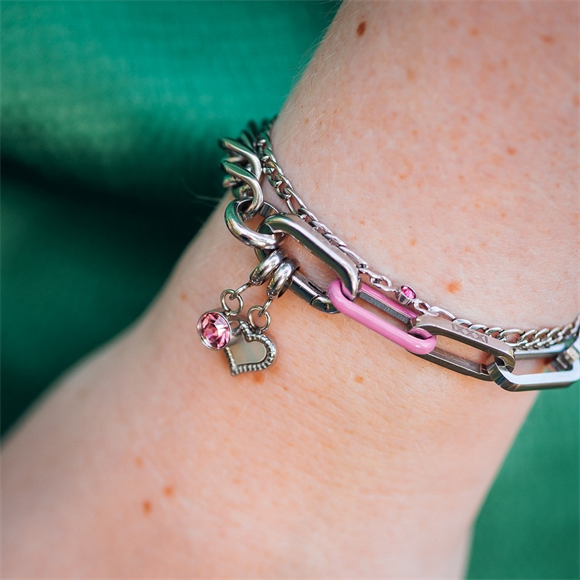 Stainless steel roze steentje bedeltje in de platingkleuren goud, zilver of roségoud.