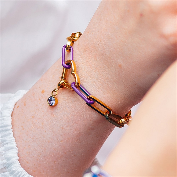 Stainless steel paars steentje bedeltje in de platingkleuren goud, zilver of roségoud.