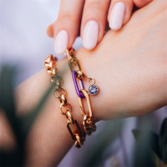 De bedel Stone Purple hanger van iXXXi Connect is gemaakt van stainless steel en is voorzien van een goudkleurige plating. De bedel bestaat uit een hanger ingelegd met een paarskleurige zirconia en heeft een afmeting van 7mm. Hang bedel Stone Purple aan bijvoorbeeld verbindschakel Click Round en voeg een extra touch of purple toe aan jouw iXXXi Connect sieraad. De bedel Stone Purple is ook verkrijgbaar in de platingkleuren zilver en rosé goud.