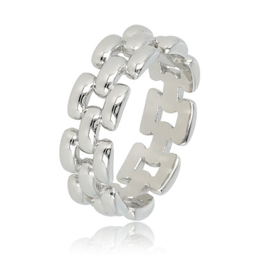 Elegante brede gevlochten goudenof zilveren damesring, stijlvol en tijdloos. Perfect voor elke gelegenheid. 1 jaar garantie.