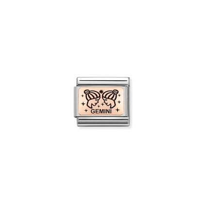 Een 9k roségouden Nomination Link met het sterrenbeeld Tweelingen.