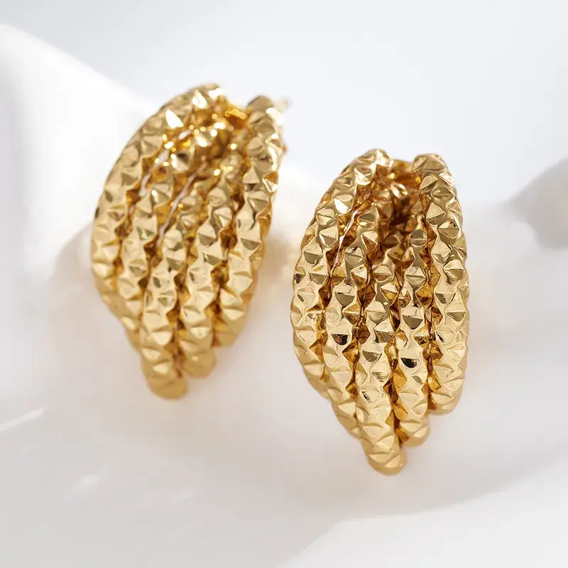 Trendy gouden statement oorbellen van stainless steel. Verkrijgbaar in een gladde en textured variant. Kleurvast, waterproof en perfect voor dagelijks gebruik. Combineer moeiteloos met iedere outfit voor een stijlvolle en moderne look.