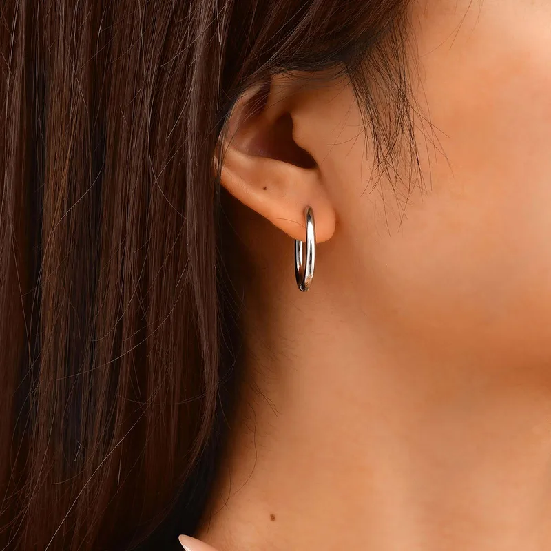 Deze stijlvolle stainless steel hoops van 2,1 cm zijn de perfecte balans tussen subtiel en opvallend. Het middelgrote formaat maakt deze oorbellen ideaal voor dagelijks gebruik, terwijl ze toch net dat beetje extra geven aan jouw look.