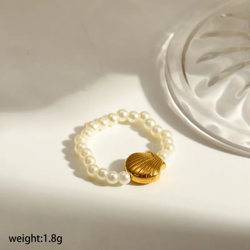 Deze elastische ring met schelp detail is een echte musthave voor liefhebbers van minimalistische sieraden met een beachy twist. Het fijne design met kraaltjes en schelp geeft een elegante en frisse uitstraling.