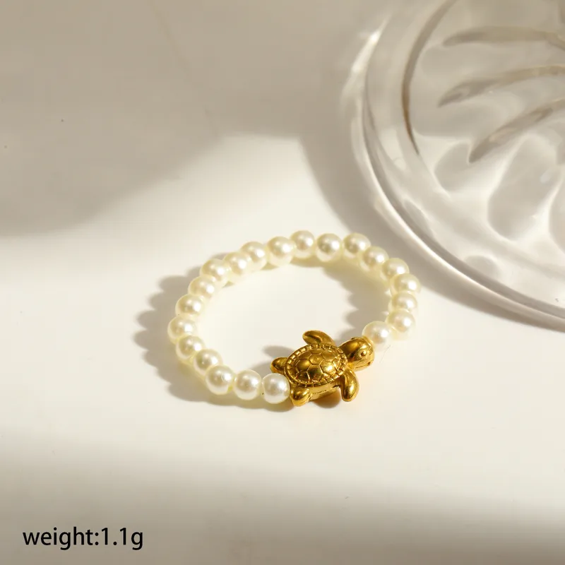 Elastische Stainless Steel Ring Schildpad – Goud, Two Tone of Parel