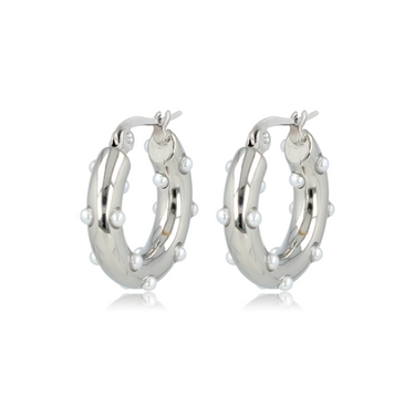 Voeg luxe toe aan je look met deze elegante gouden oorringen, versierd met stralende witte parels. Perfect voor bruiloften, diners of een chique avondje uit. Nikkelvrij en comfortabel, een must-have van My Bendel.
