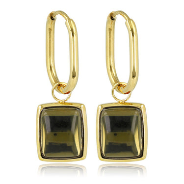 Stijlvolle Gouden Ovale Oorringen met Lichtgroene Glassteen - Nikkelvrij Stainless Steel Elegantie. Ontdek nu! - My Bendel