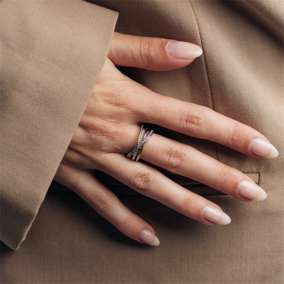 Design: Drie vaste ringen, waarvan één met zirconia-inleg