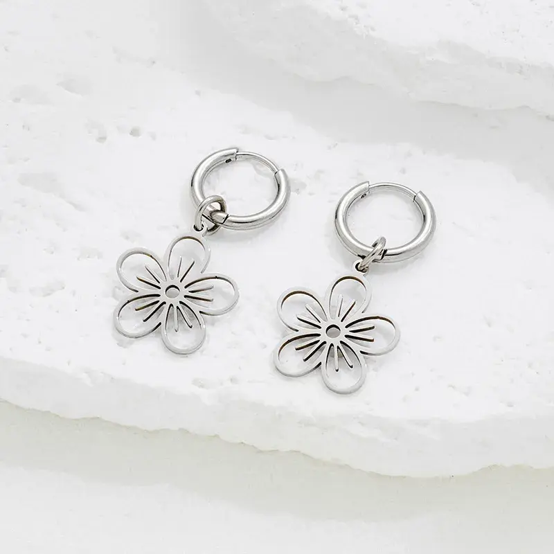 Stainless Steel Oorbellen Open Bloem – Goud & Zilver