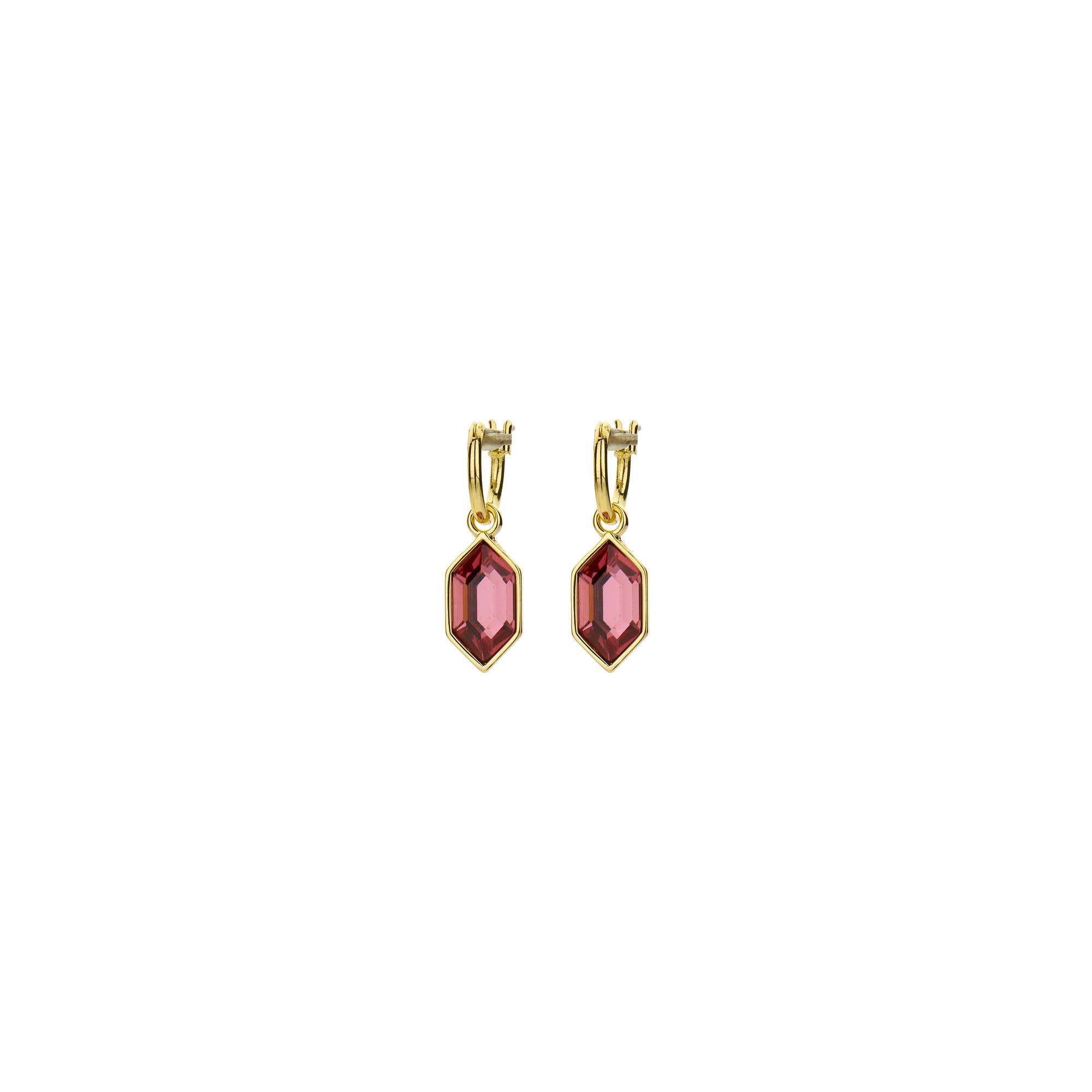 Goudkleurige klassieke stalen crystal oorbellen van Biba met een roze steen.