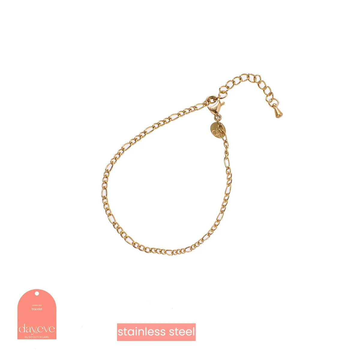 Goudkleurige stainless steel armband met minimalistische schakel van het Nederlandse sieradenmerk Day & Eve. Gemaakt van edelstaal, dus verkleurt niet.