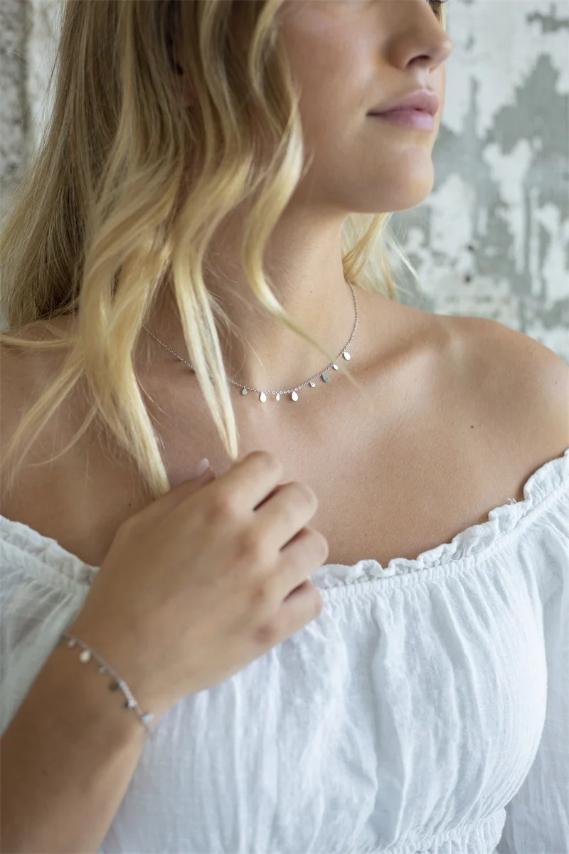 Helemaal weg zijn wij van dit tijdloze armbandje met druppeltjes! Perfect te combineren met andere minimalistische sieraden of statement oorbellen, you name it. Het armbandje heeft subtiele schakels en als details kleine druppeltjes.