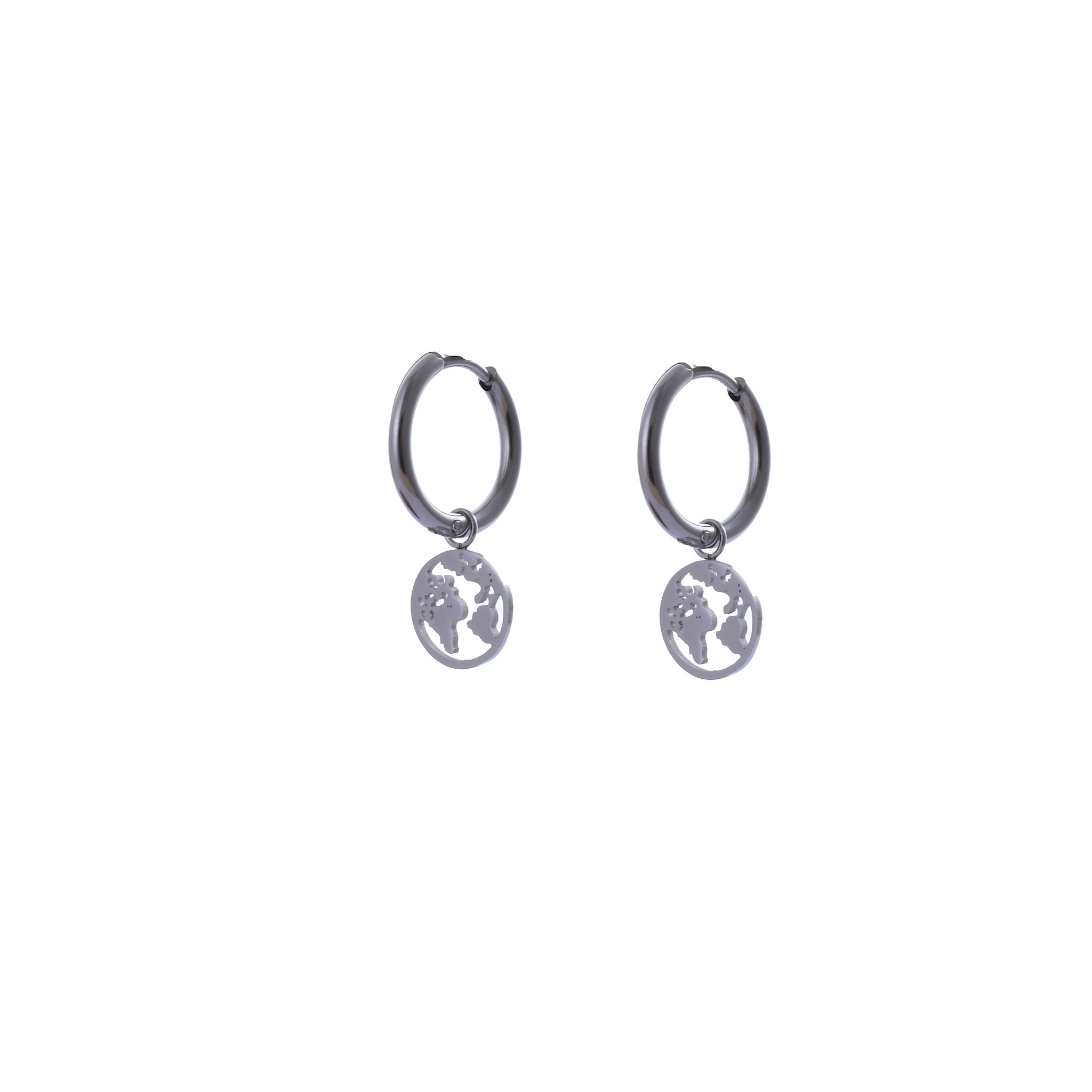 Voor iedere outfit: Day & Eve stainless steel oorringen met een wereldbol bedeltje, fashionable & waterproof. Plus een leuke reminder aan jouw reizen.