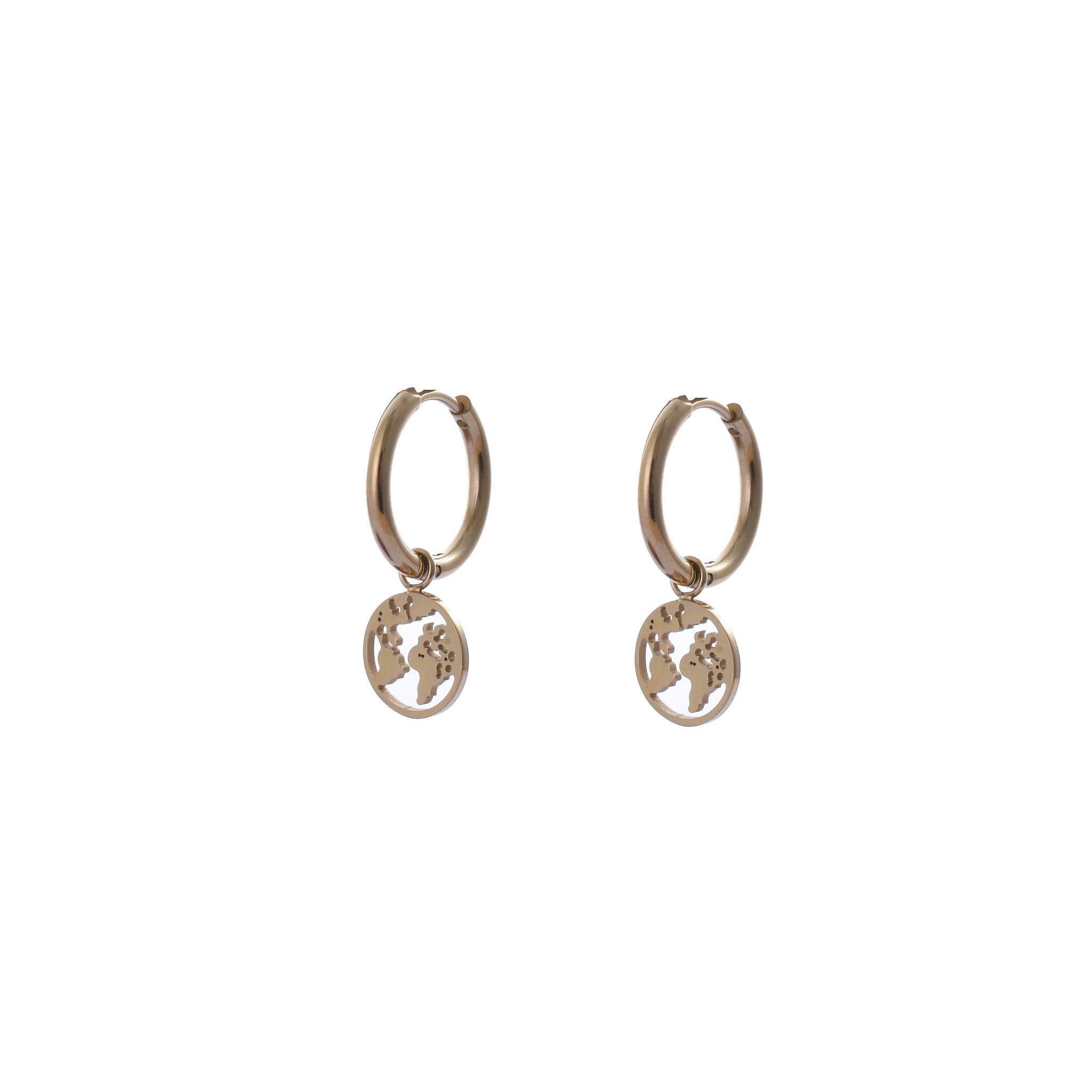 Altijd glanzend, nooit verkleurd – Day & Eve stainless steel oorringen met een wereldbol die ook mooi blijven tijdens al jouw reisavonturen.