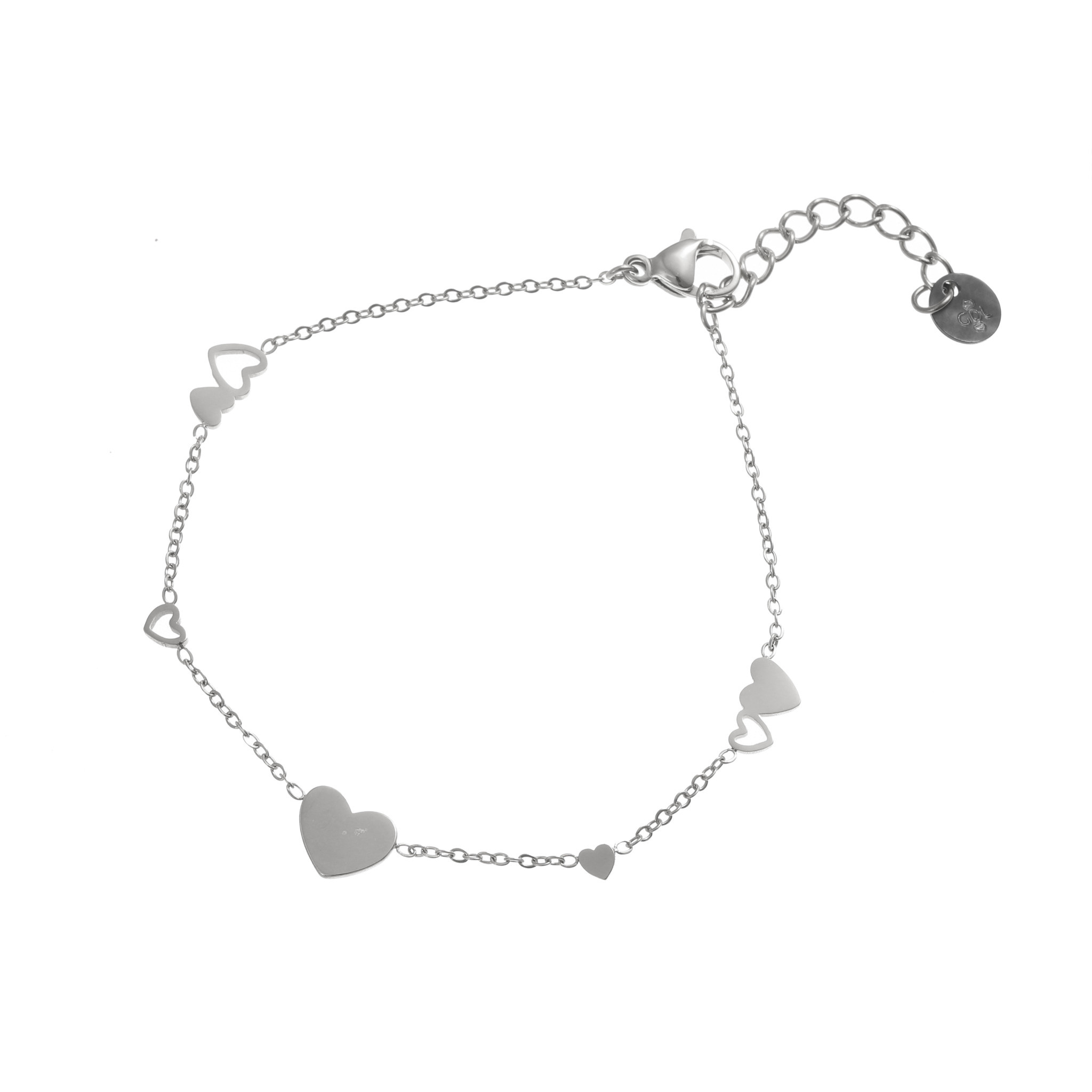 Deze bedelarmband met hartjes is een armband die door jong en oud gedragen kan worden door de tijdloze hartjes en erg leuk om cadeau te doen! Door het premium stainless steel zal deze armband heel lang meegaan.