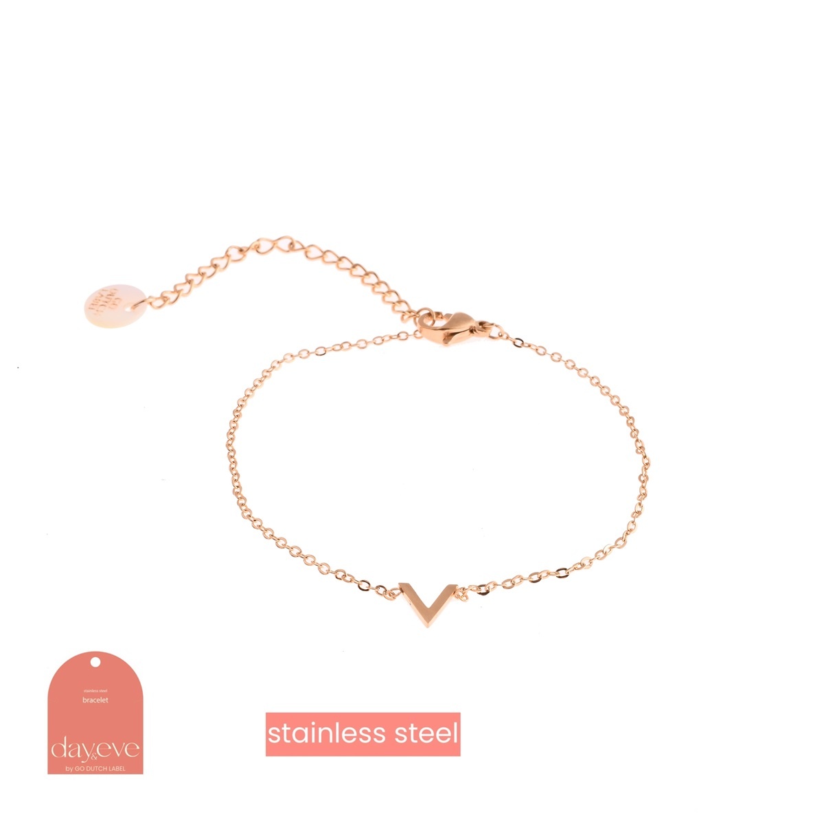 Deze V armband is super populair! De V van vrouwelijk en verfijnd, deze armband zal je look compleet maken. Draag de V armband solo of maak een armparty combinatie met andere Day & Eve by Go Dutch Label armbanden.