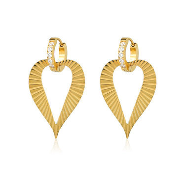De opvallende hartvormige hanger van 30 mm heeft een verfijnd geribbeld design dat het licht prachtig vangt en sierlijk meebeweegt. Dankzij de 14K gold plated afwerking zijn de oorbellen duurzaam, stijlvol en geschikt voor dagelijks gebruik.