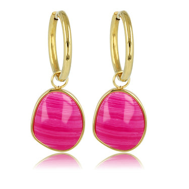 Stijlvolle goudkleurige oorringen met Rose Stripe Agate hanger, nikkelvrij stainless steel - Voeg elegantie toe aan je look! - My Bendel