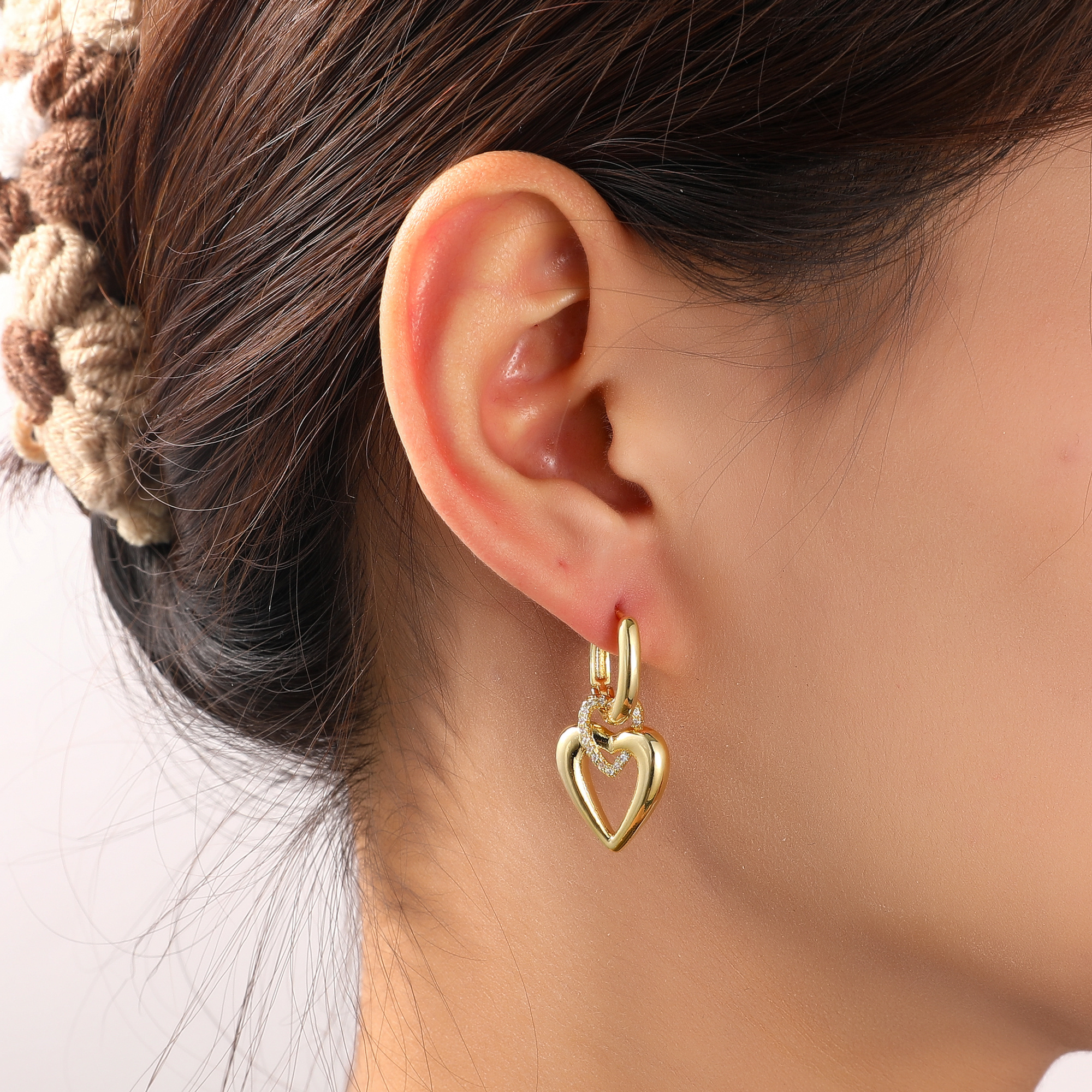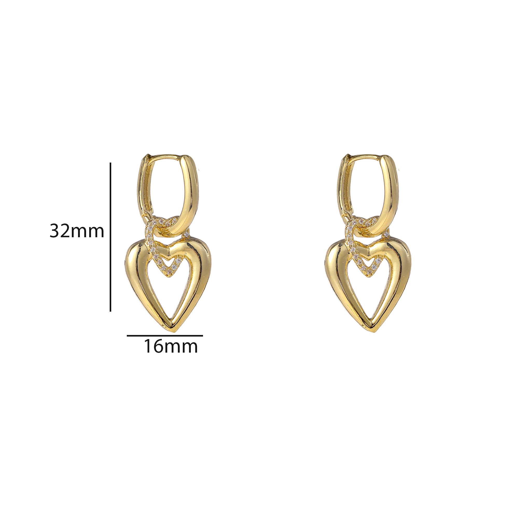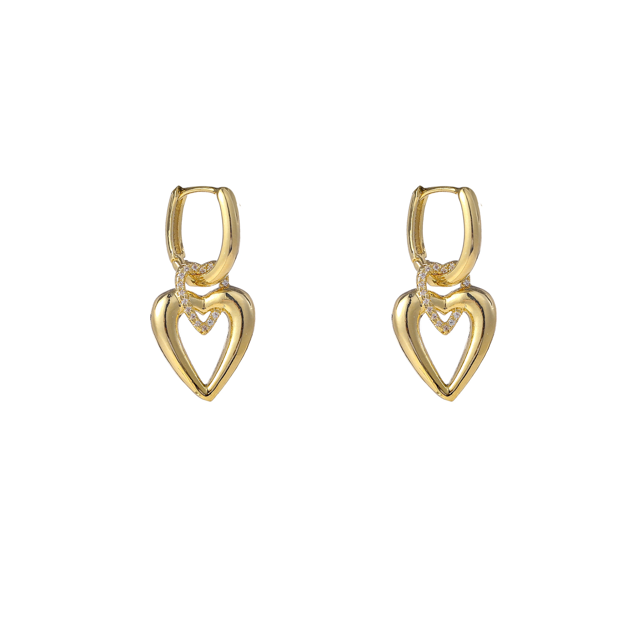 Heart in Heart Dangle Goldplated Oorbellen E55114-2