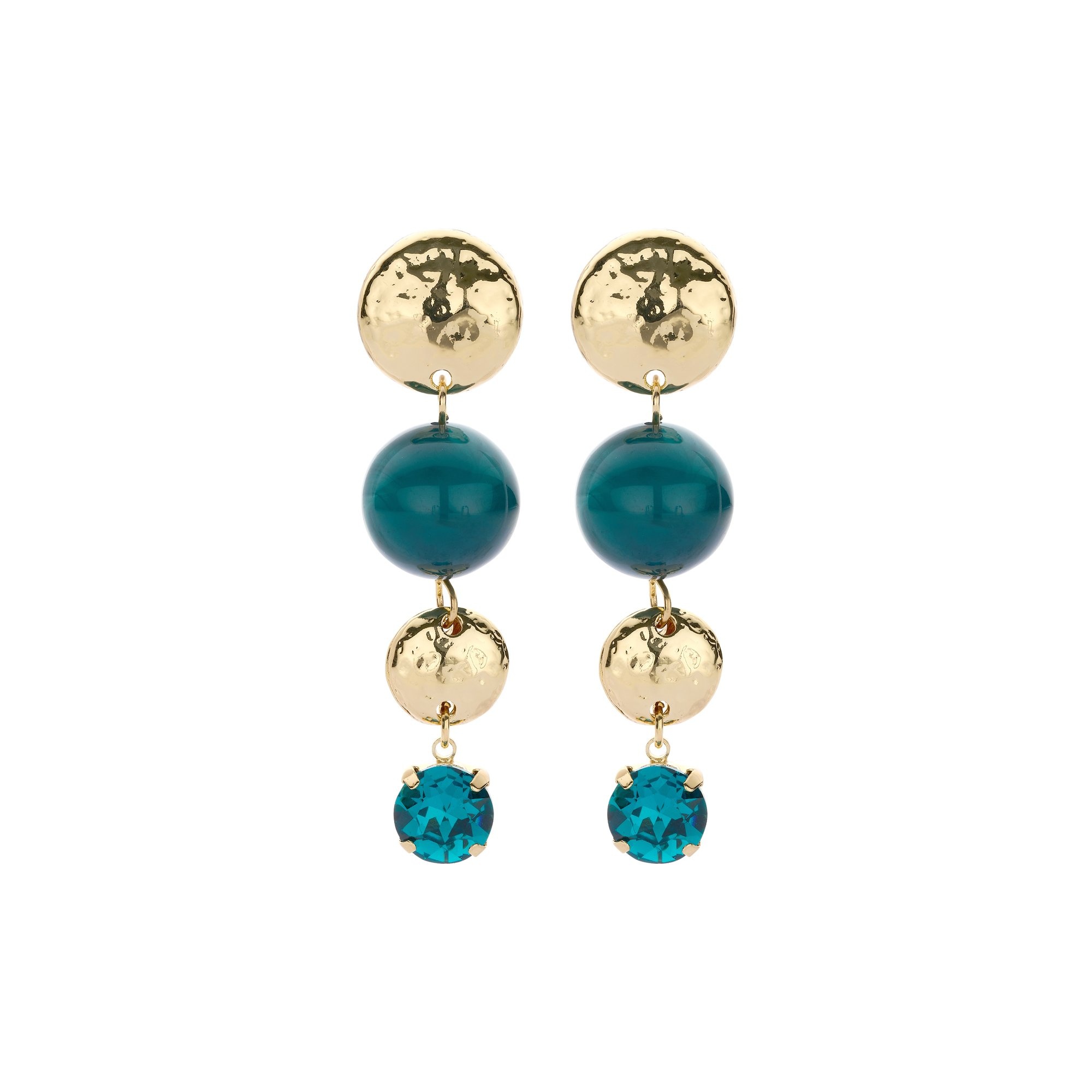 Maak je look compleet met deze opvallende Biba oorbellen in goud en petrolblauw. Met hun speelse mix van glanzende kralen en sprankelende steen zijn ze dé eyecatchers voor vrouwen die houden van kleur en expressie.