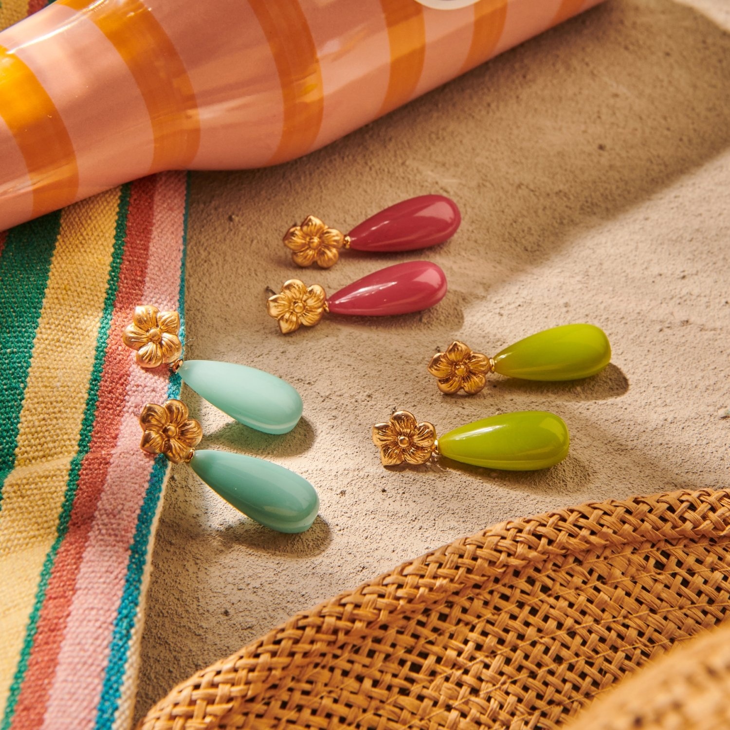 Zon op je huid – Oorbellen die passen bij een zongebruinde look en een ontspannen mindset.