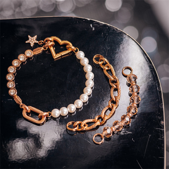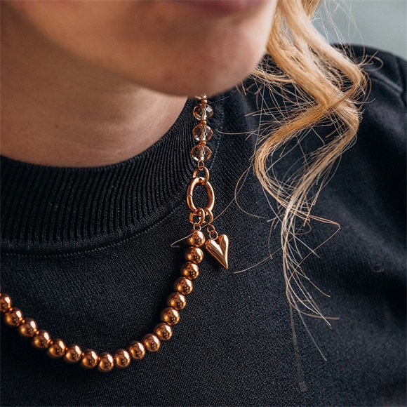 De iXXXi Connect Ketting Bliss Champagne is een stijlvolle en elegante toevoeging aan jouw sieradencollectie. Deze ketting bestaat uit een streng van stainless steel met rosé goudkleurige plating, voorzien van champagnekleurige kralen met een facet geslepen design. De warme en sprankelende tint geeft de ketting een luxe uitstraling, perfect voor een feestelijke avond of speciale gelegenheid.