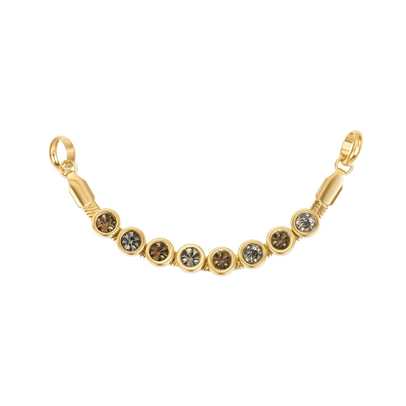 De iXXXi Connect Ketting Britta Topaz is een verfijnde toevoeging aan jouw persoonlijke sieraadcreatie. Deze ketting bestaat uit een fijne, platte schakel van stainless steel, waaraan ronde vormen zijn bevestigd die zijn ingelegd met sprankelende steentjes in warme, neutrale aardetinten. Het elegante kleurenspel maakt de Britta Topaz een veelzijdig en stijlvol onderdeel voor iedere look.