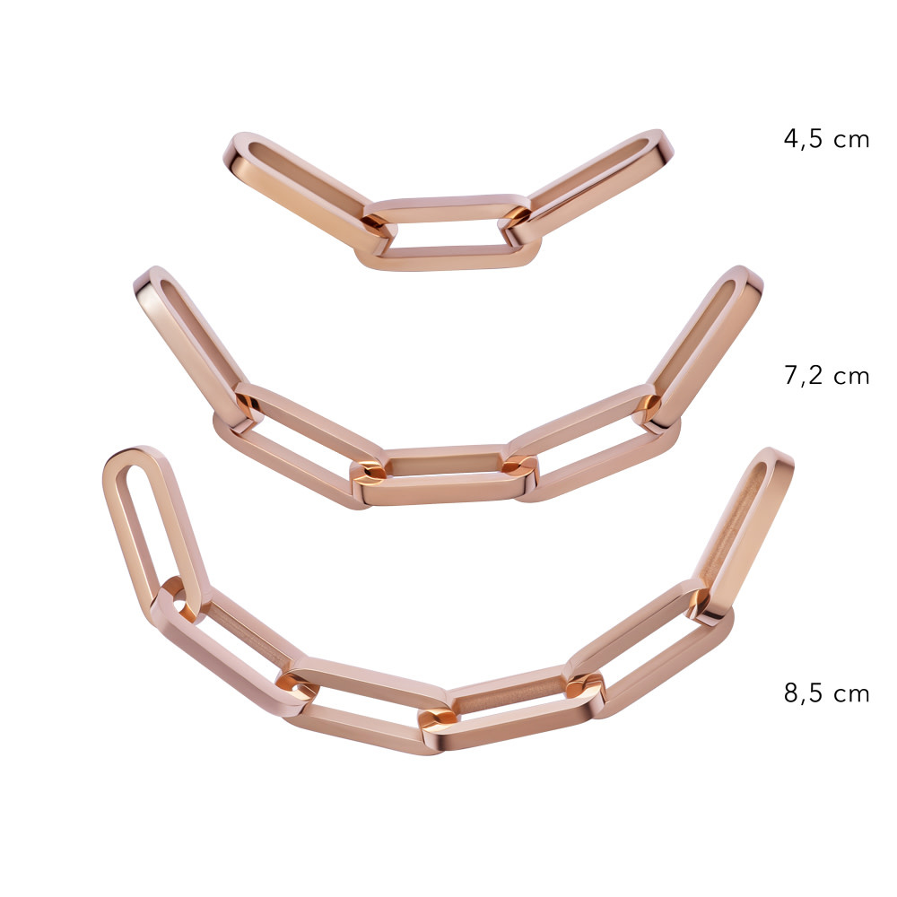 De iXXXi Connect Ketting Connect met drie grove schakels van stainless steel. Voeg 4,5, 7,5, 8,5 of 21,5 cm toe. Verkrijgbaar in goud, rosé zwart en zilver.