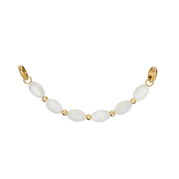 Design: Streng met ovale shell kralen en kleine accenten