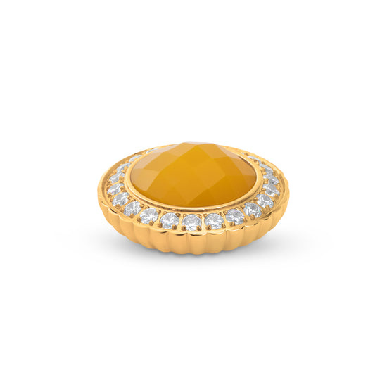 De Melano Kosmic Sphere steen is een feest voor het oog! Het kuipje is voorzien van een subtiele ribbel en de steen heeft een mooie facetslijping, samen zorgt dit voor een unieke look. De omlijsting van kleine zirkonia steentjes maakt het design hèlèmaal af. De Sphere steen heeft een doorsnede van 20 mm en is verkrijgbaar in een zilver- of goudkleurige plating.