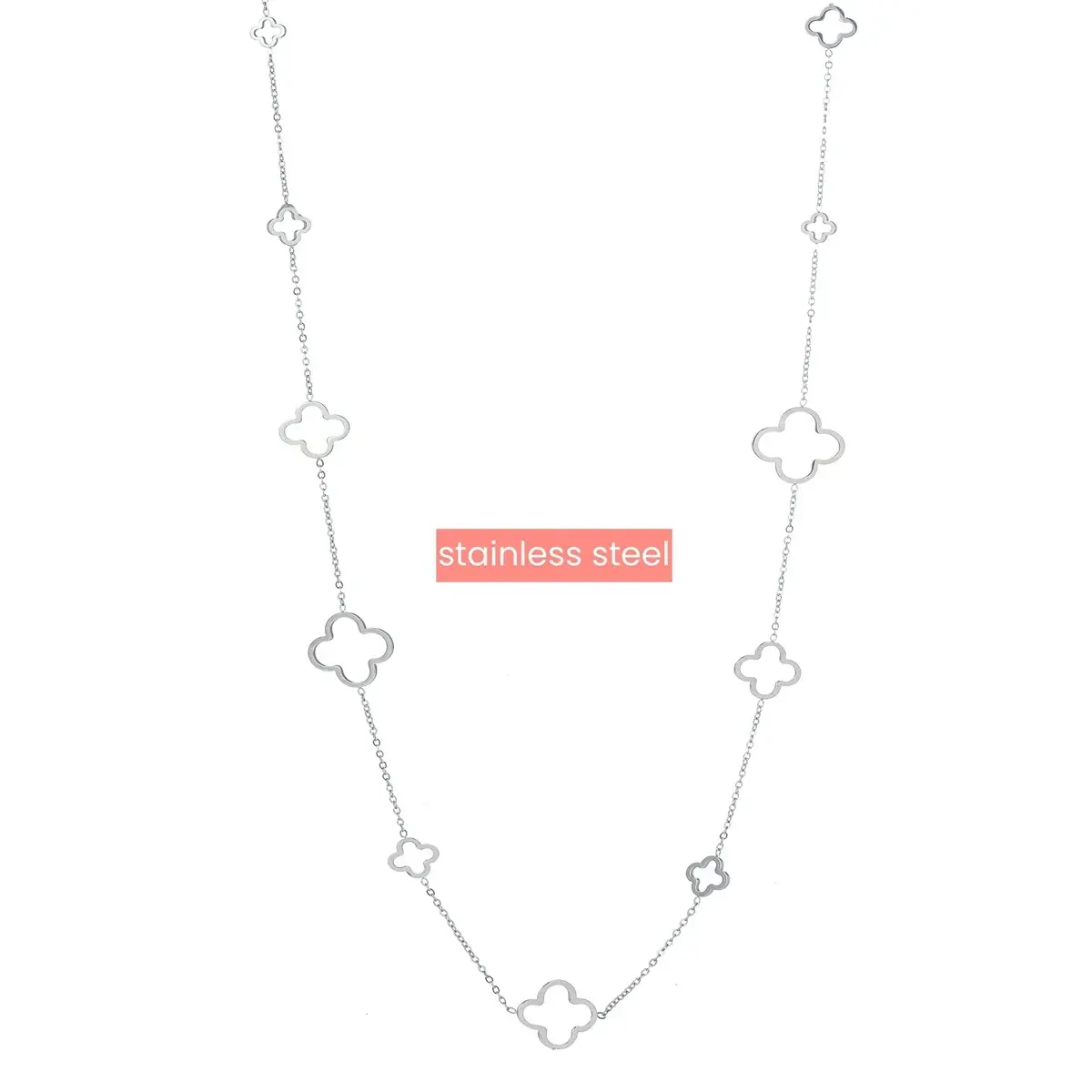 Good vibes! Met deze lange ketting met klavers draag je het geluk met je mee. Maak jouw look compleet door de ketting te combineren met jouw andere favoriete sieraden van Goodies Shop. Hurry and shop!