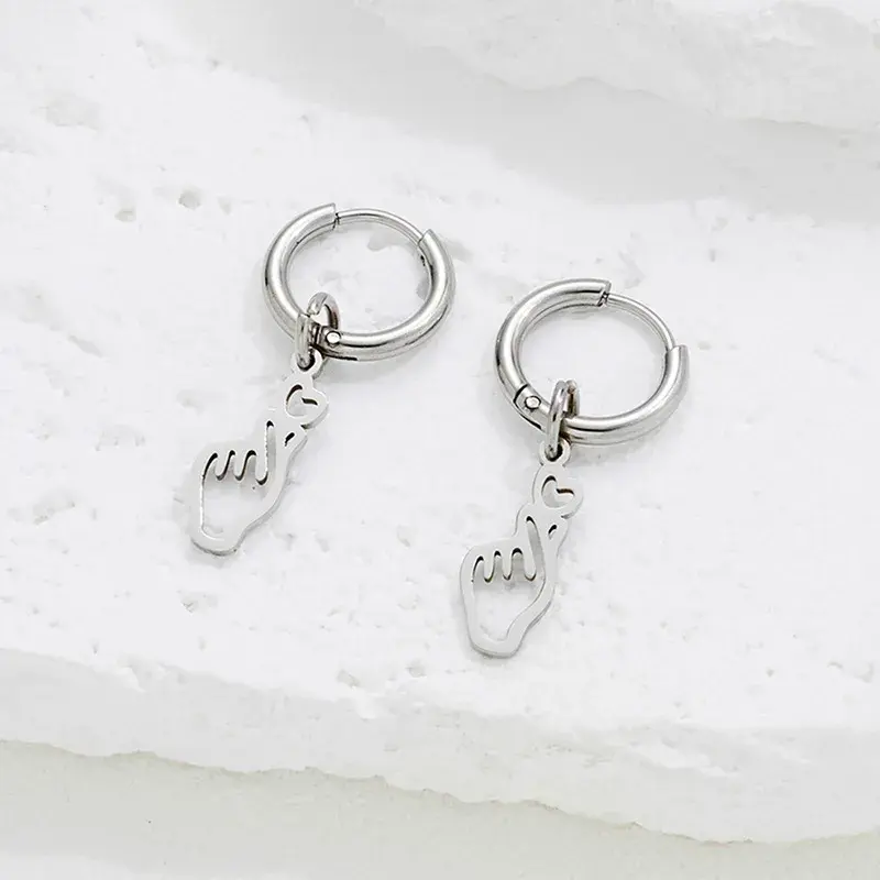 Deze zilverkleurige oorbellen met hand en hart detail zijn perfect voor een speelse maar subtiele look. Het design geeft een moderne en persoonlijke uitstraling.