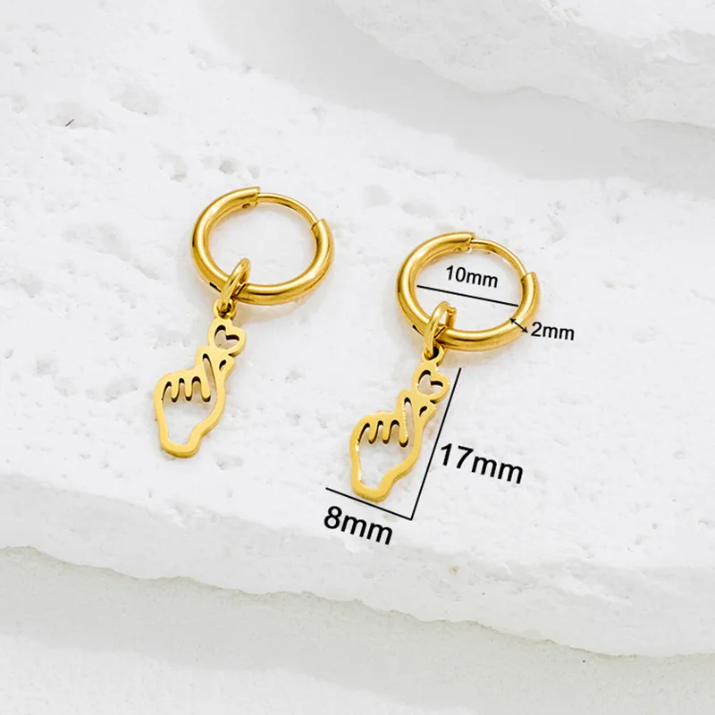 Stainless Steel Oorbellen Hand met Hart – Goud & Zilver