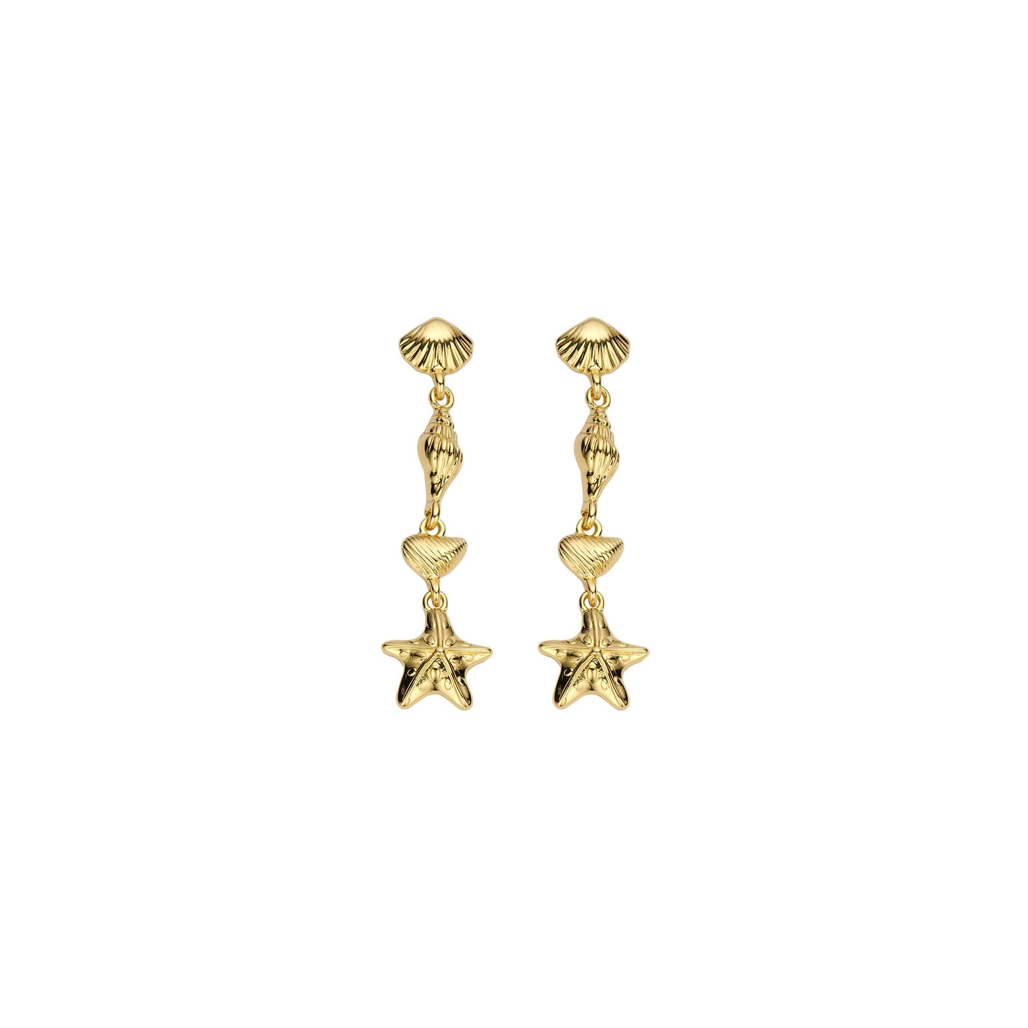Breng een zomerse flair aan je look met deze speelse oorbellen! Goudkleurige schelp- en zeesterbedels zorgen voor een instant beach vibe.