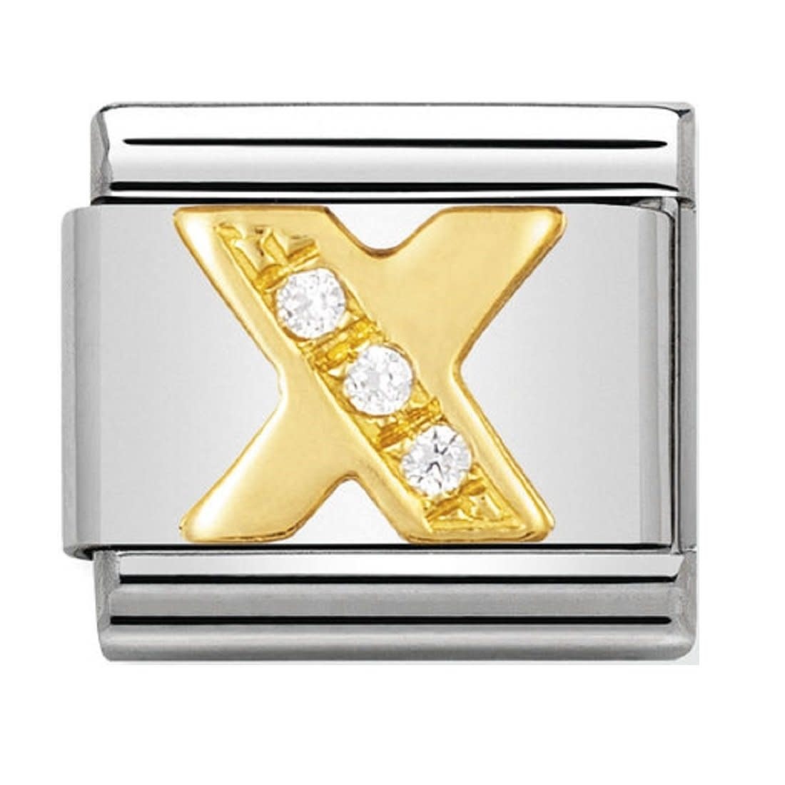 Eindeloos mixen en matchen met Nomination Italy. Met dit leuke linkje creëer je jouw eigen persoonlijke armband. Het materiaal van de link is roestvrijstaal, waar 18 karaat gouden en zirconia versieringen op zijn gezet. Met de ruime keuze aan verschillende links heb jij altijd een frisse en vernieuwende look! Het betreft hier alleen de Link Letters & CZ X. De bijpassende armband en andere links zijn apart te bestellen.