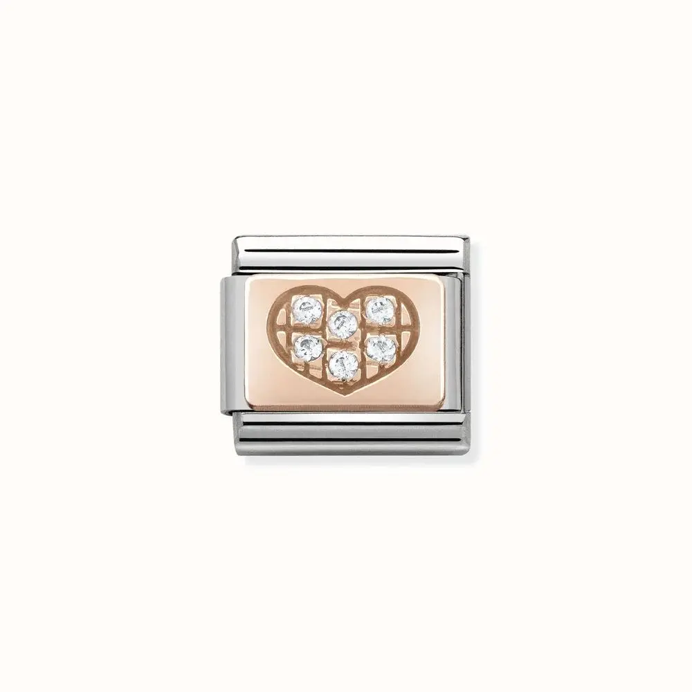 Nomination Link Rosékleurig - 430302-01 - Classic SYMBOLS IN STAINLESS STEEL WITH 9K ROSE GOLD AND CZ - Heart Plate