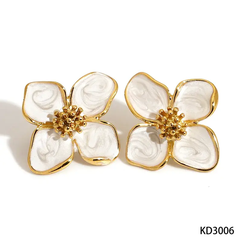 Trendy bloem oorbellen van stainless steel met goudkleurige plating en emaille. Kleurvast, hypoallergeen en perfect voor elke look.