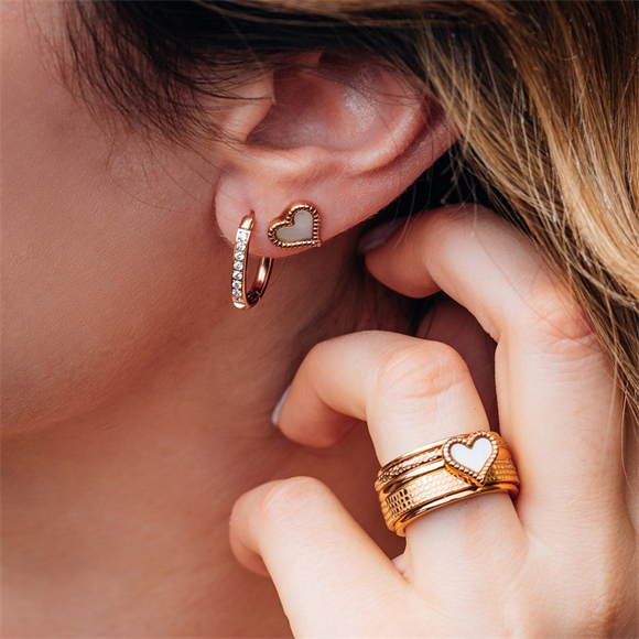 De iXXXi oorbellen Love zijn gemaakt van stainless steel en zijn voorzien van een goudkleurige plating. De goudkleurige oorbellen hebben de vorm van hartjes en zijn ingelegd met 'shell'. De afmeting van de oorbel is 10x9mm. De Love oorbellen zijn een echte must-have voor jouw earparty! Je kunt namelijk meerdere oorbellen naast elkaar dragen. Heb je meerdere gaatjes in je oren? Draag dan de Love oorbellen in je eerste gaatje en combineer met ons grote assortiment iXXXi earstuds in de kleur goud.