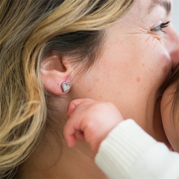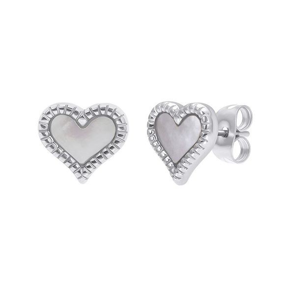 Stainless steel oorstekers met een parelmoer hartje in de platings zilver, goud en rosé.