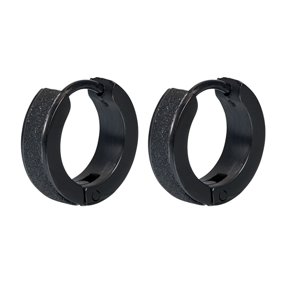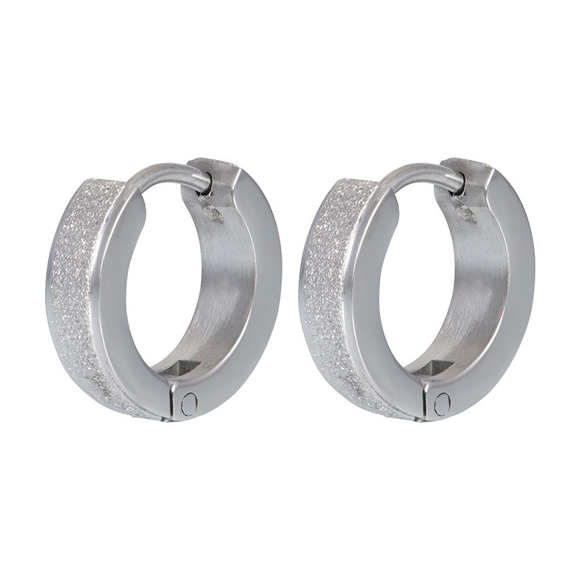 Stainless steel oorringen met een glinsterende zandstraal look.
