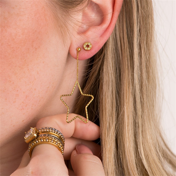 De iXXXi oorbellen Spirit zijn gemaakt van stainless steel en zijn voorzien van een goudkleurige plating. De ear studs zijn oorhangers in de vorm van een ster, bestaande uit een fijne schakel en een gevlochten design. De iXXXi oorbellen Spirit zijn een echte toevoeging voor jouw ear party! Heb je meerdere gaatjes in je oren? Draag dan deze goudkleurige oorbellen in je eerste gaatje en kies voor je achterste gaatje een ander item uit de iXXXi oorbellen collectie. Met welke iXXXi items combineer jij onze goudkleurige Spirit earstuds? De iXXXi oorbellen Spirit zijn ook te verkrijgen in de kleuren rosé goud en zilver.