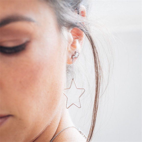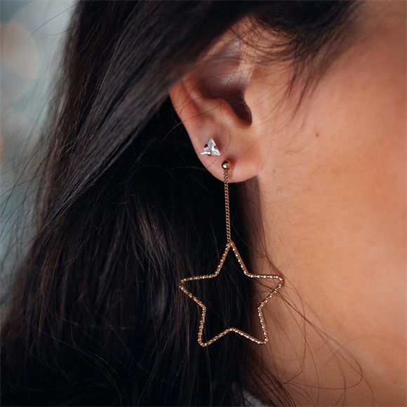 Stainless steel oorstekers met hangende ster in zilver, goud of rosé.
