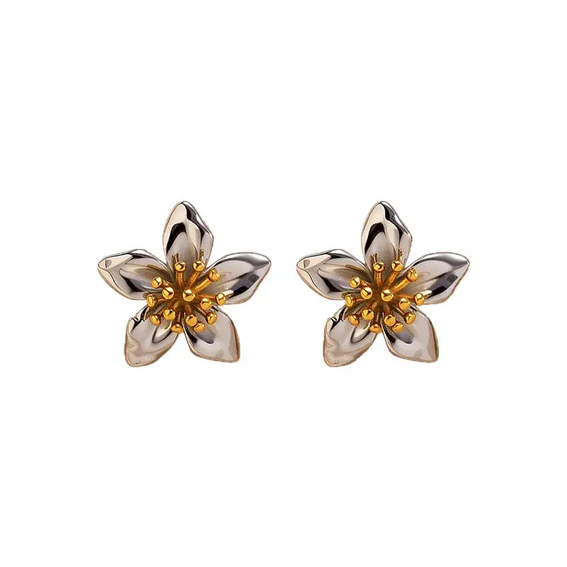 Stijlvolle bloem oorstekers van stainless steel. Bicolor design met goud en zilver voor een trendy en luxe look.