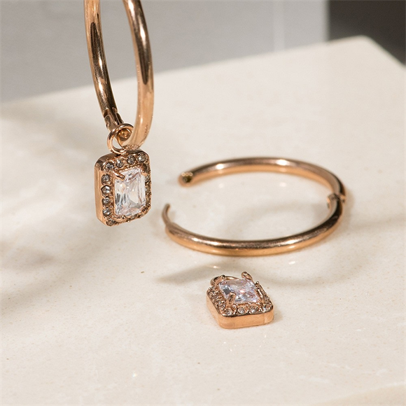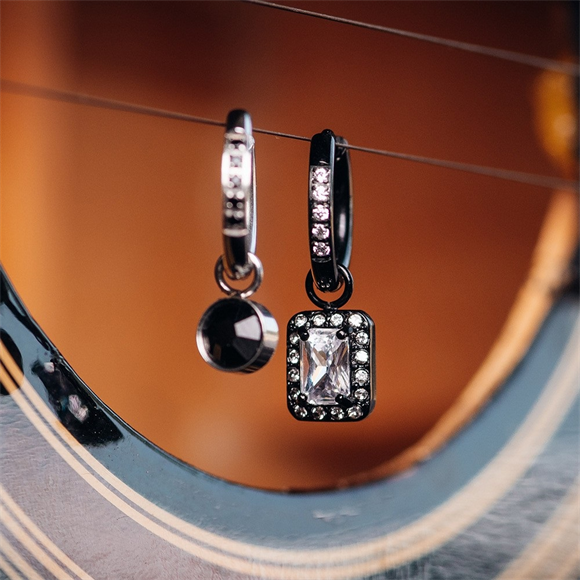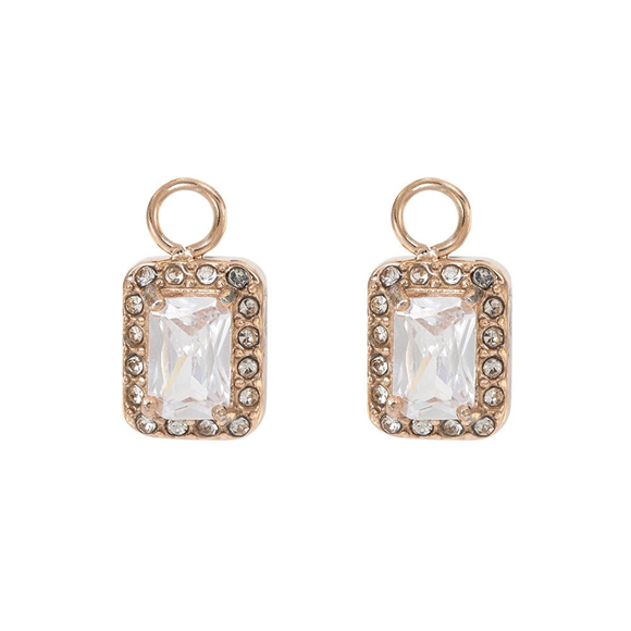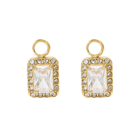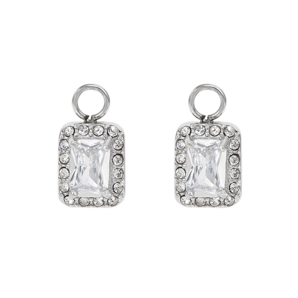 Rechthoek stainless steel oorbel bedels met heldere zirconia steen om aan je oorringen te hangen in het zilver, goud, rosé of zwart.